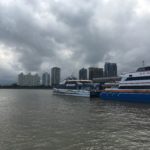 Cruise ships can’t anchor because it’s too deep, according to Nicklas, so they drift while we’re onshore. The tender boat ride to shore is short 8 minutes, including the load and unload. We’re the last few got on, and the transfer to bus is only about a minute or two. But the ride back to our boat takes much longer. Get on at 8:21, left port 8:34, off 8:46.