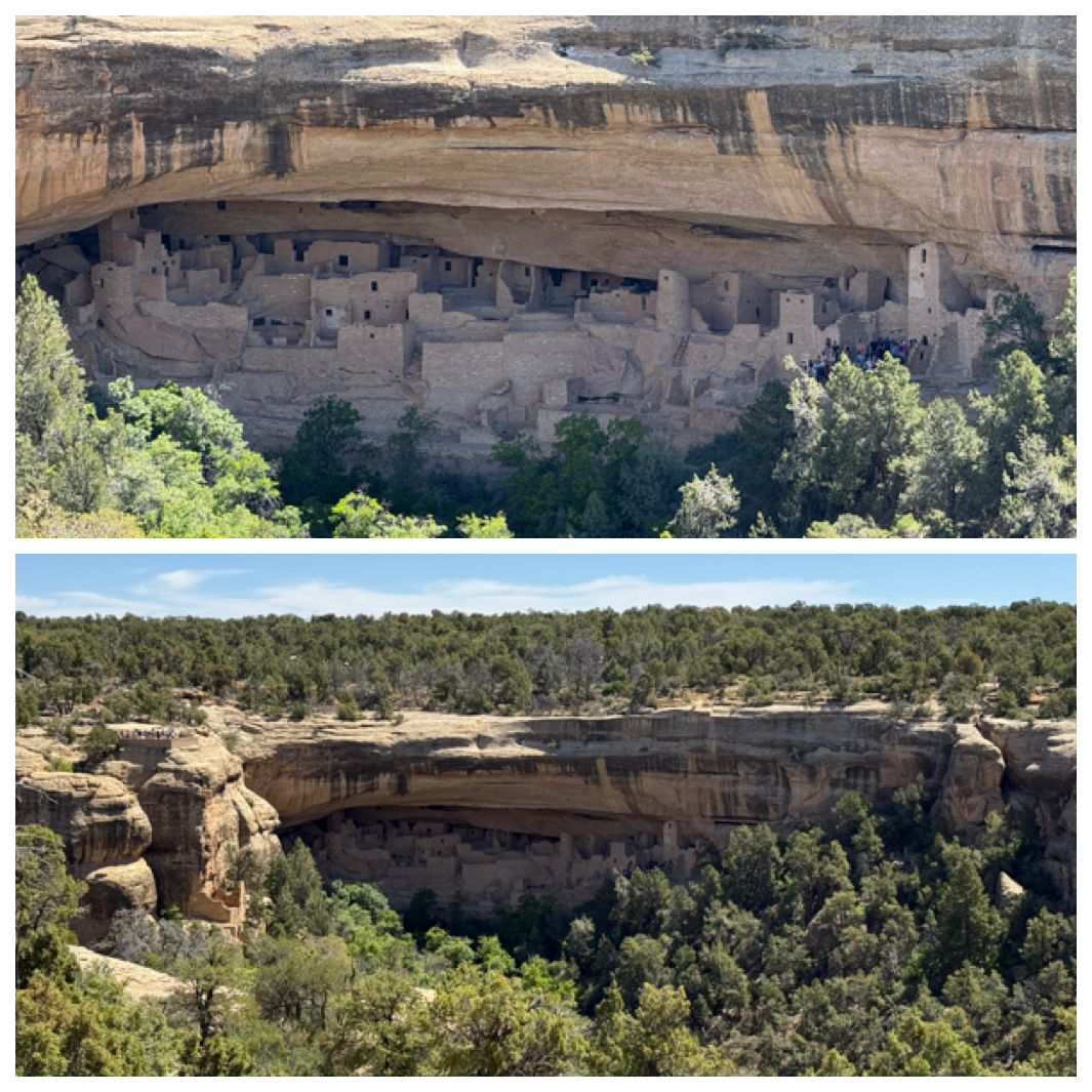 The most impressive site in the park. It’s the largest, was ‘discovered’ in the 1800s, with 150 rooms and 23 kivas (spaces used by Pueblos for rites and meetings), housed about 100 people. Other cliff dwellings (such as Fire House) are much smaller, they were about 1 to 5 rooms, and there are 600+ such dwellings in the park.
