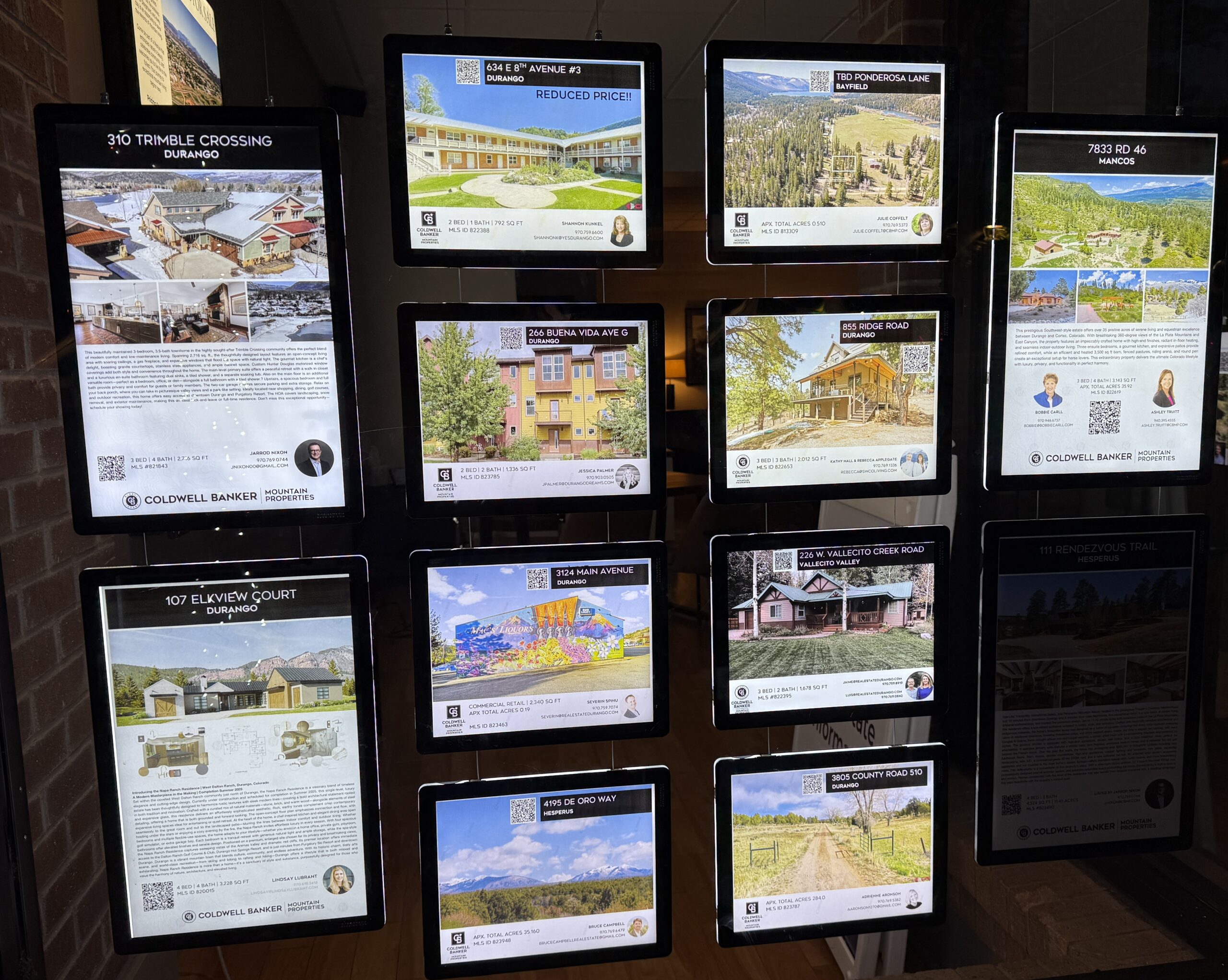 The ground level has 4 modern paintings and top level has a large window looking out to Main Ave and couple of small skylights.