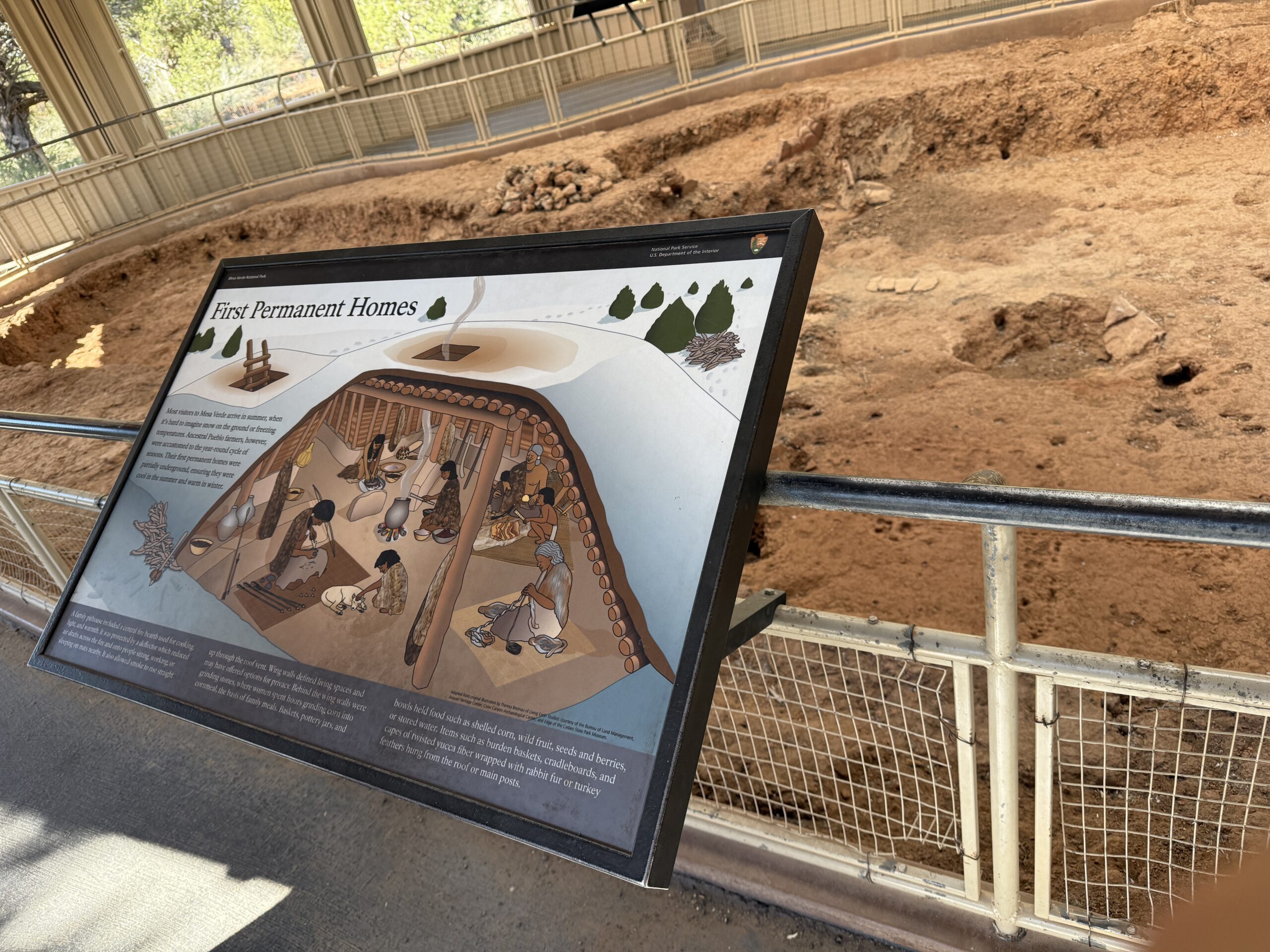 These underground houses were ways for the Pueblo farmers to deal with the four seasons: keeping cool in the summer and warm in the snowy winter. The nomadic people lived in the area for thousands of years, permanent homes began to appear on the mesa around 550.