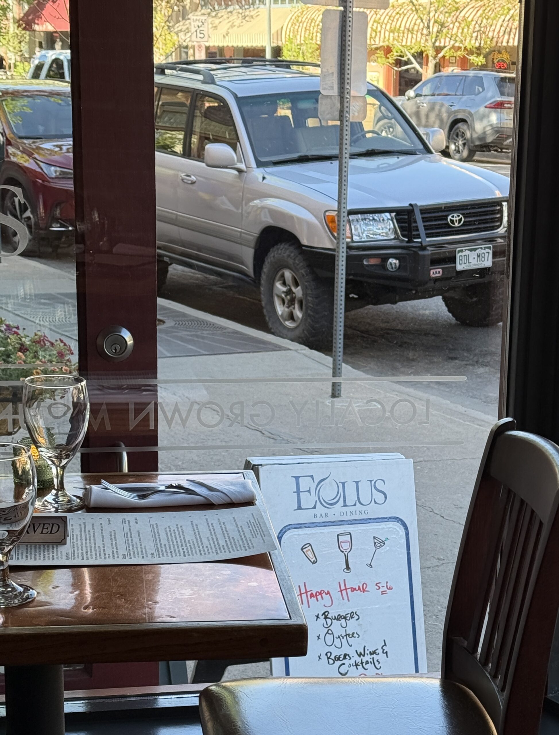 Durango has many wine bars on Main Ave. EsoTerra; Oye & Eolus: we bar hopping, instead of dinner, visiting three (Oye twice). Main Ave feels young and vibrant, perhaps Durango is the home of Fort Lewis College?