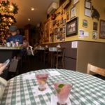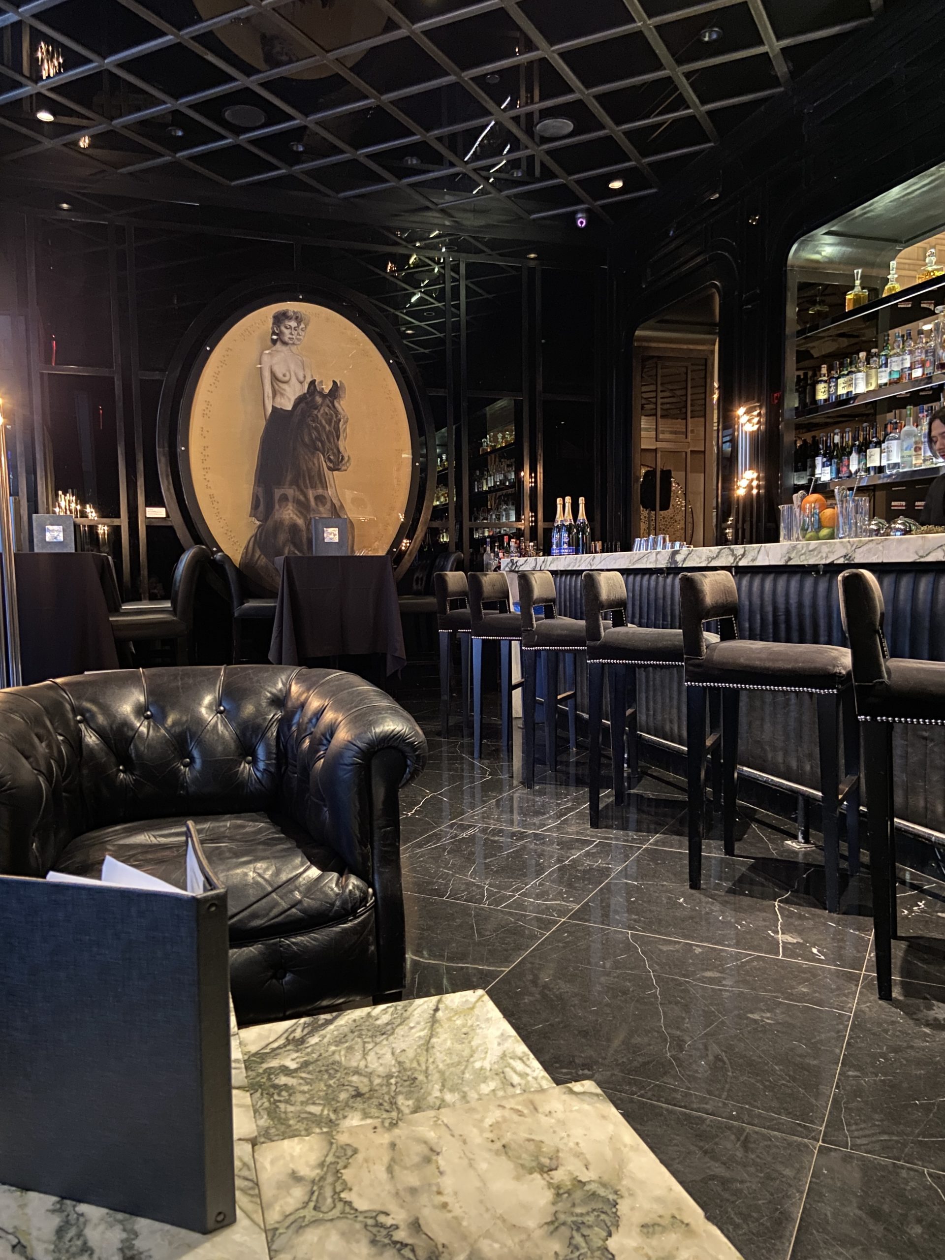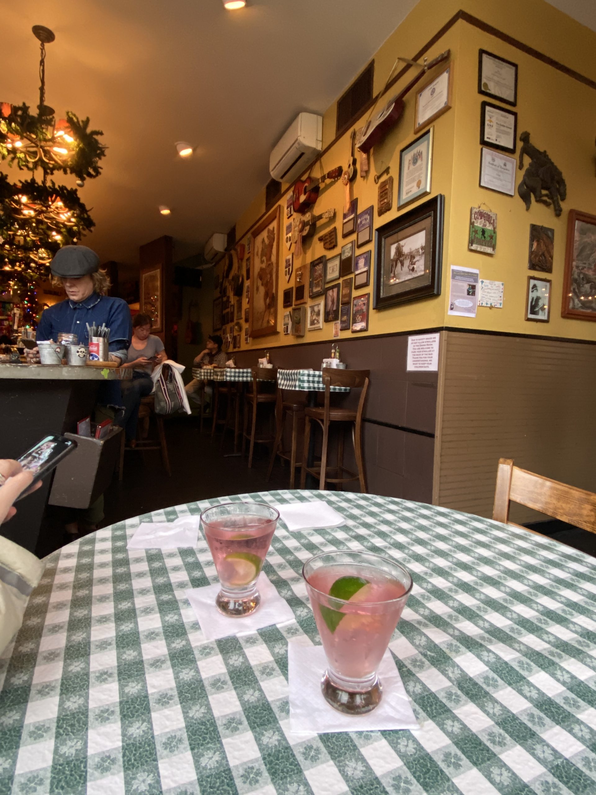 A bar in the West village owned by a lady from Waco Texas. Checkered white and green plastic covered tables. To the left is the bar and right is a restaurant, serving chill and dogs. The Cosmo is $13 but strong. We were there because of Sex and the City …