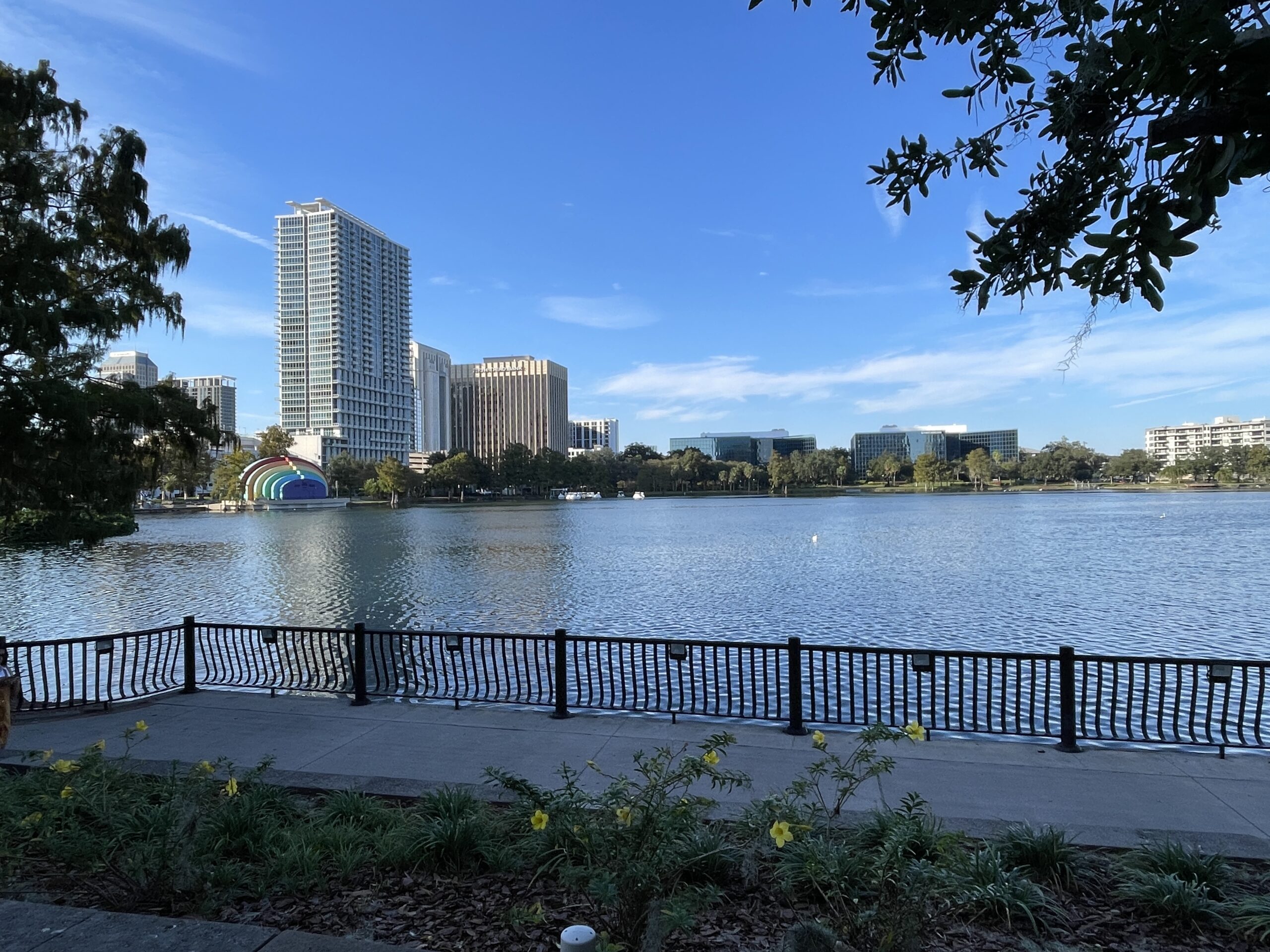 Latin restaurant Nineteen 61 is solid five star. Couple of doors away is their Saturday market on N Kentucky Ave (the Ave has many cute shops) since 2004, four blocks long; opens 8am-2pm. They also run old car shows (Lake Mirror Classic Concours and Car Show). A couple of other restaurants nearby are popular: Harry’s (is basic) and Terrace Grill (is a little stuffy … it’s hotel rooms run $140 now to $500 during the winter months.) 1961 is lively and a scene. A few steps east, is Kryger Park on Lake Mirror.
